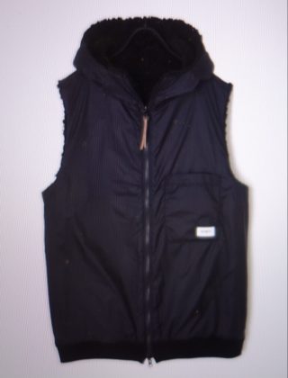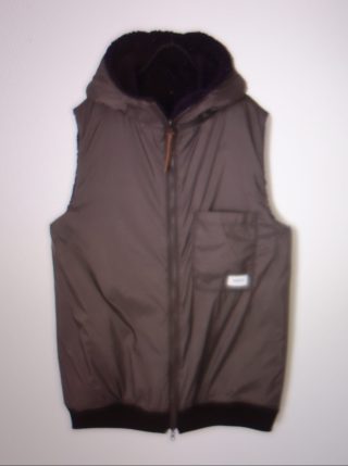 ざっくりしたニットやスウェットなどの上にもオススメのとても軽いリバーシブルベスト。