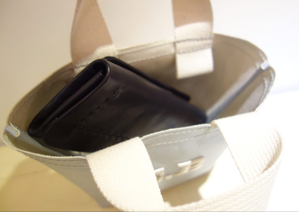 長財布がギリギリ入るサイズ感、二つ折りや三つ折りなどのコンパクト財布がオススメです。