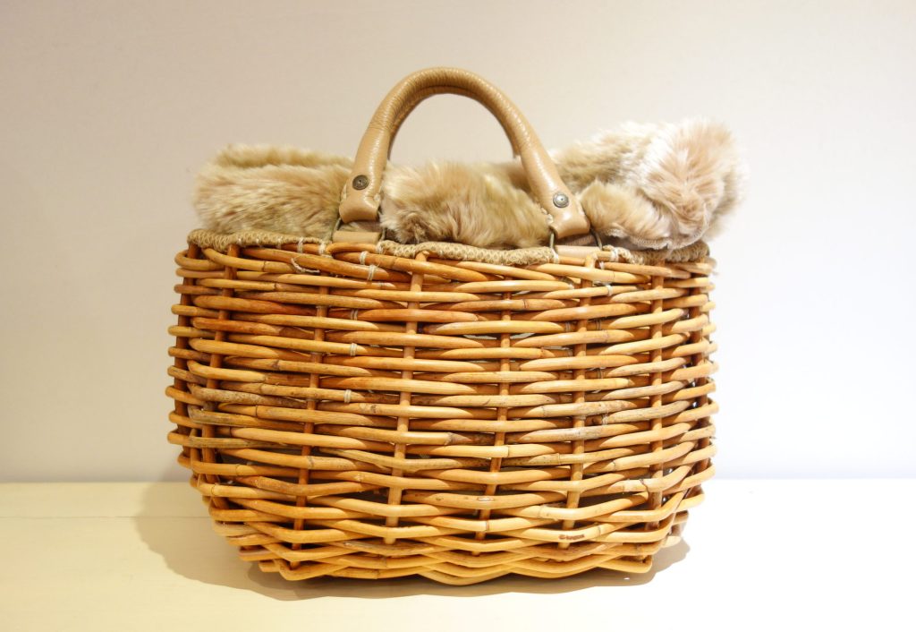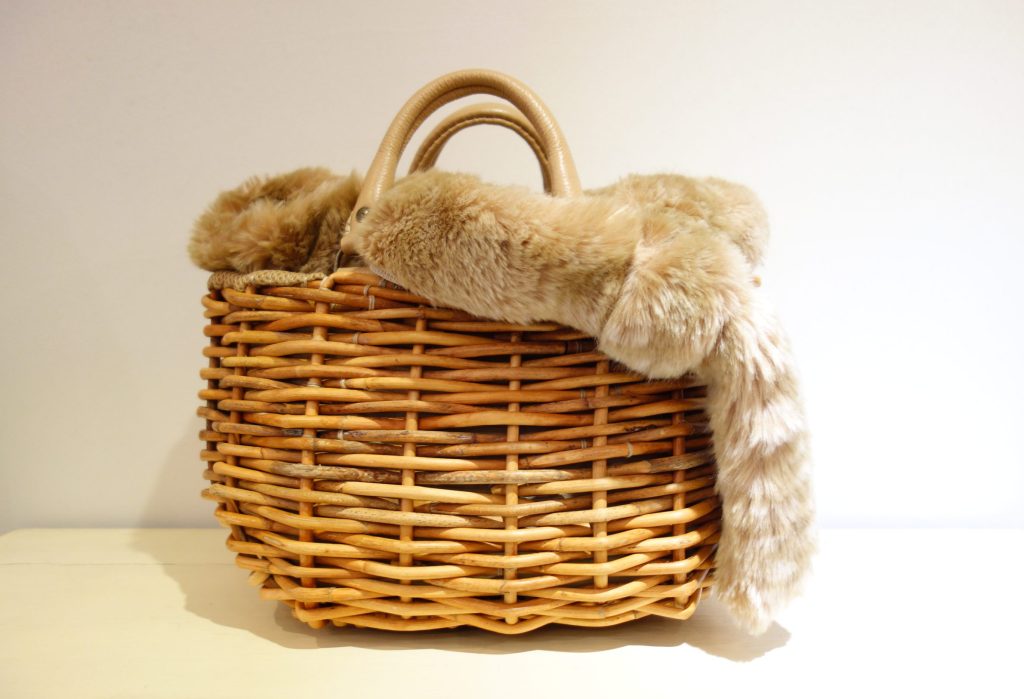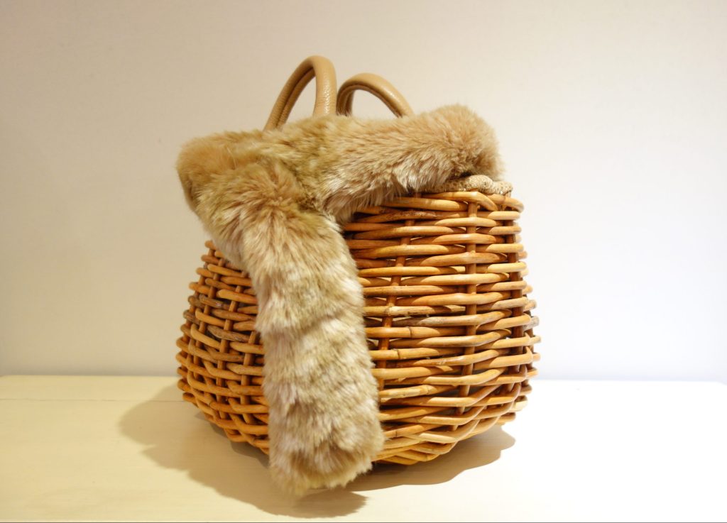 エバゴスらしいカゴバッグはバンビのエコファーがよく映えます。