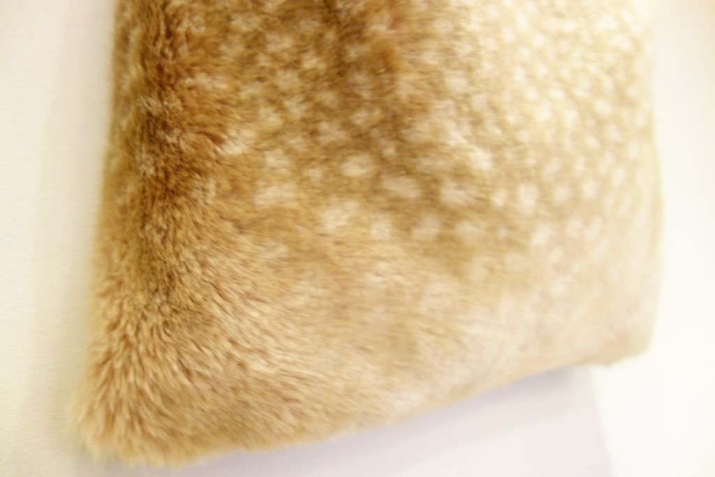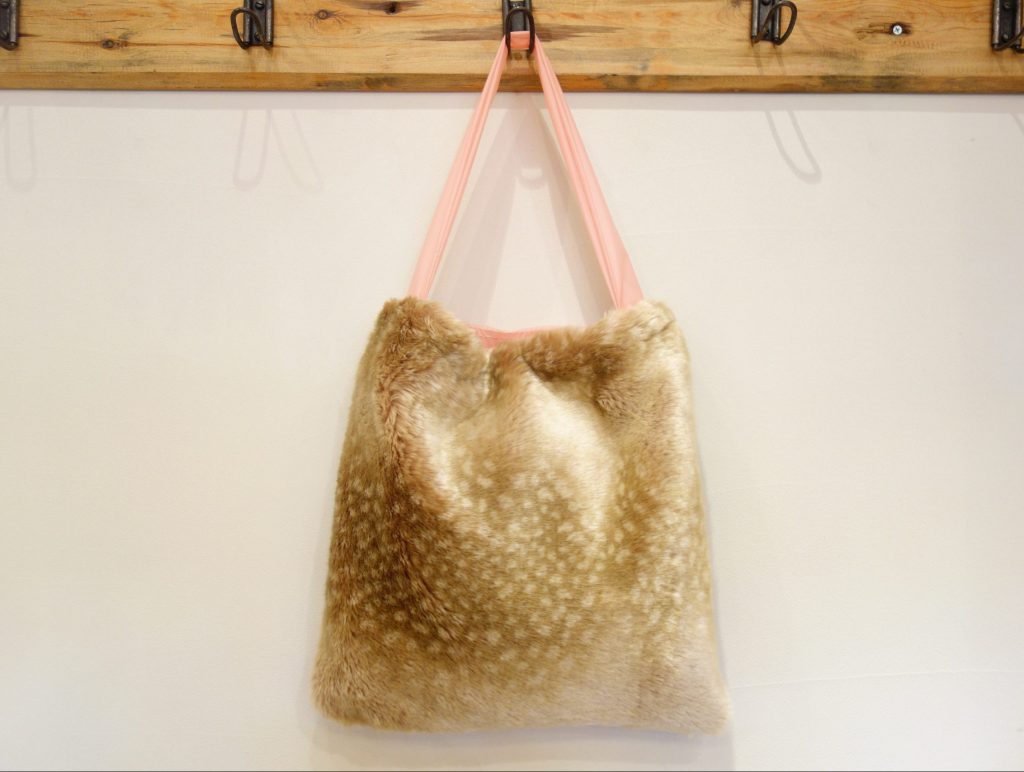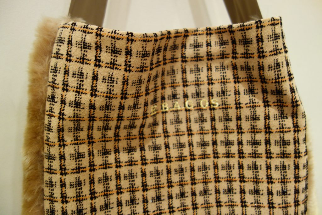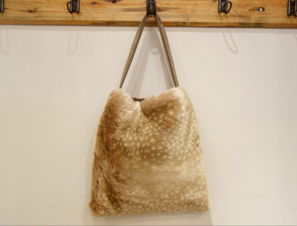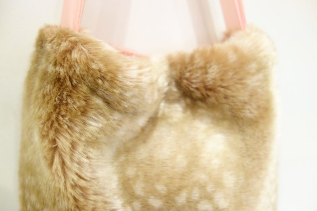 バンビ柄のファーとスウェードチェックの組み合わせが可愛いコーディネートバッグ。