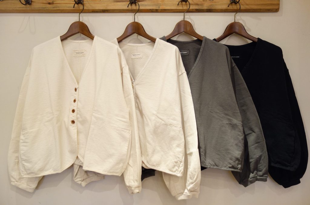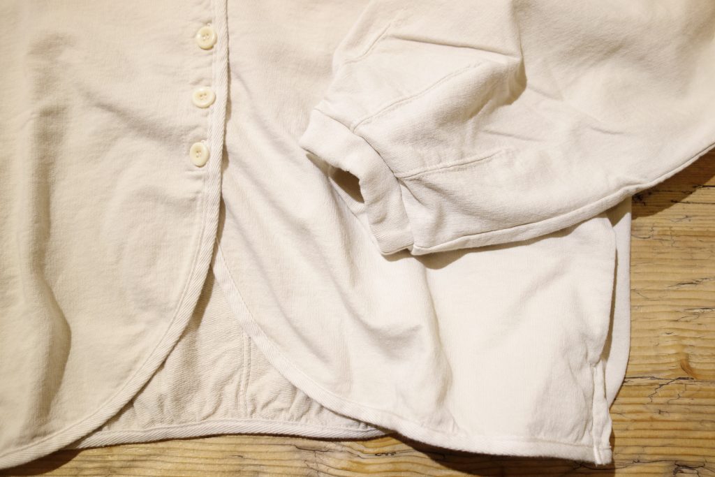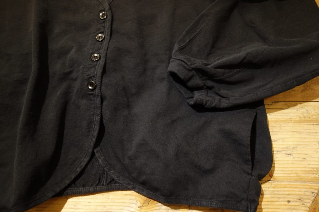 カーディガン型はあまり多くないUSA裏毛、今季のこのデザインはとても新鮮で可愛いです。