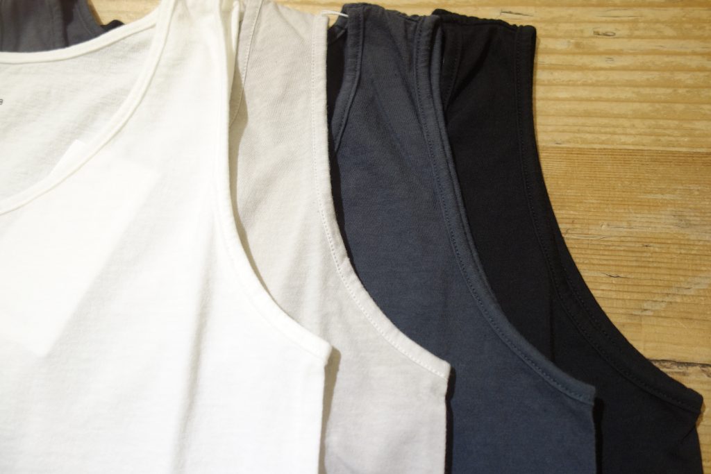 久しぶりにオーガニックコットンのタンクトップがお色が揃って入荷しました。