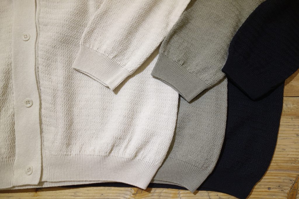軽くて柔らかなニット素材が心地良く、冬の終わりから春先にちょうど良い厚みのコットンニット。