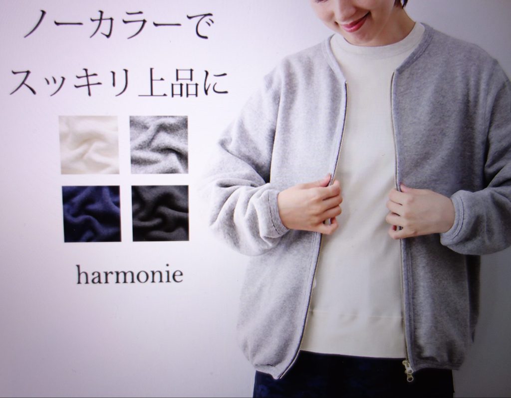 ヴィンテージ裏毛ノーカラーダブルジップカーディガン(harmonie)¥9790税込