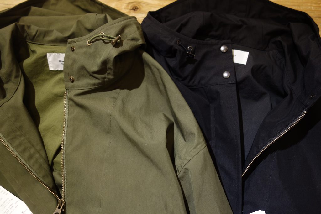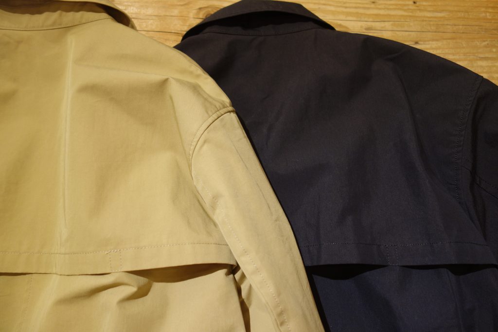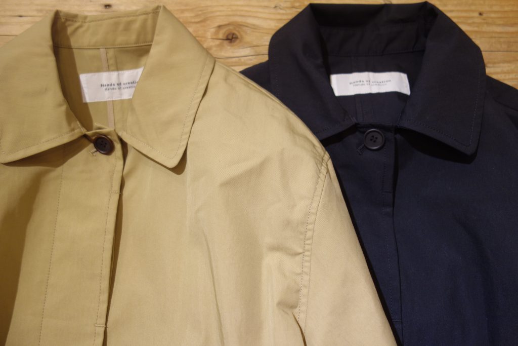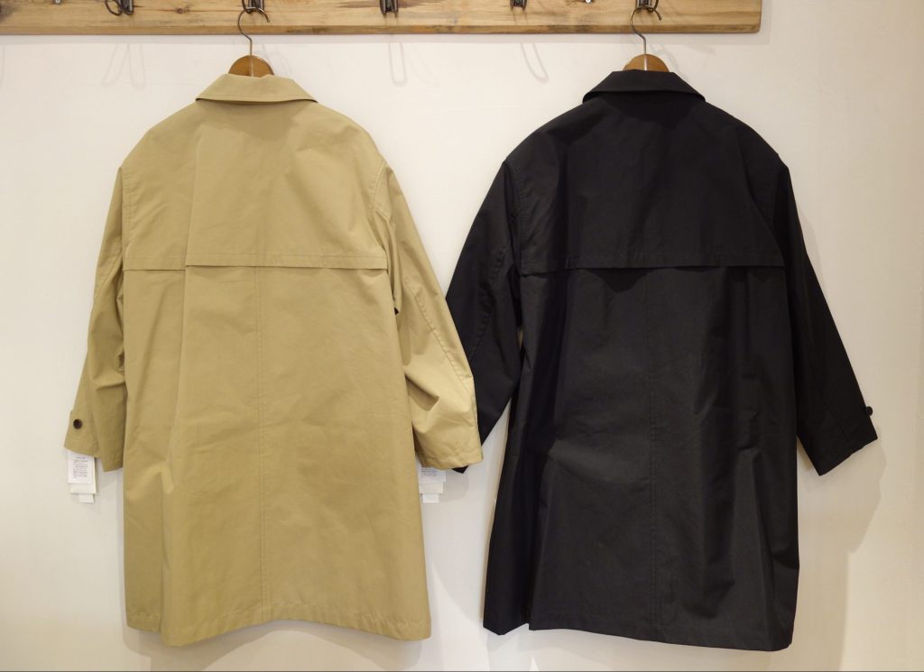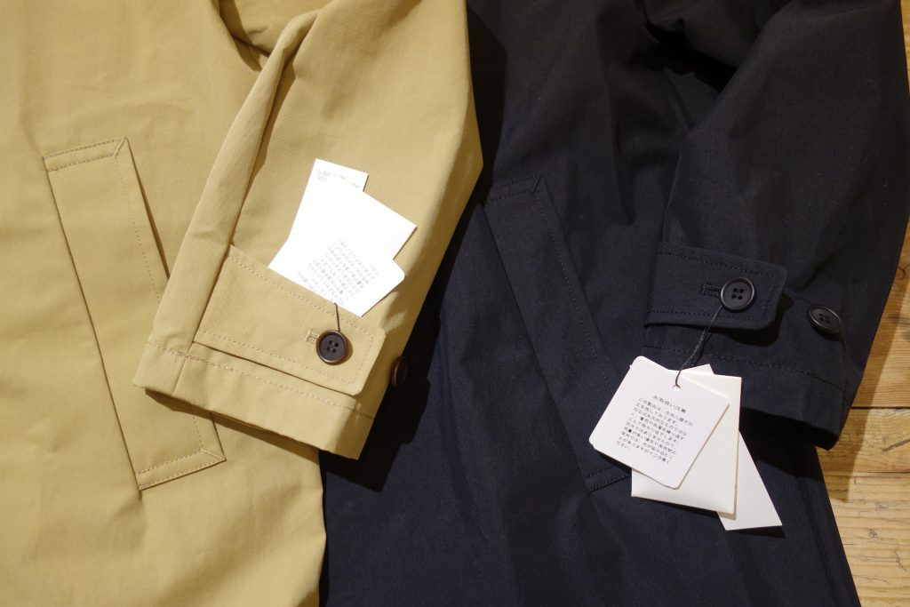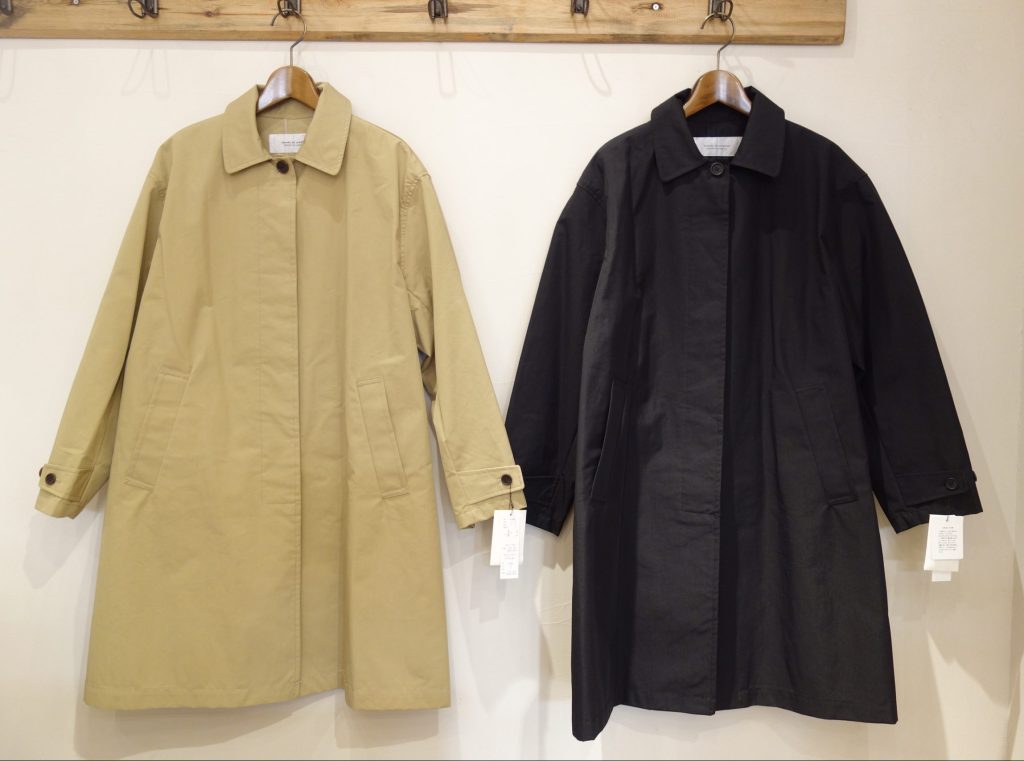 コットンナイロン素材のシンプルなステンカラーコートが入荷しました。
