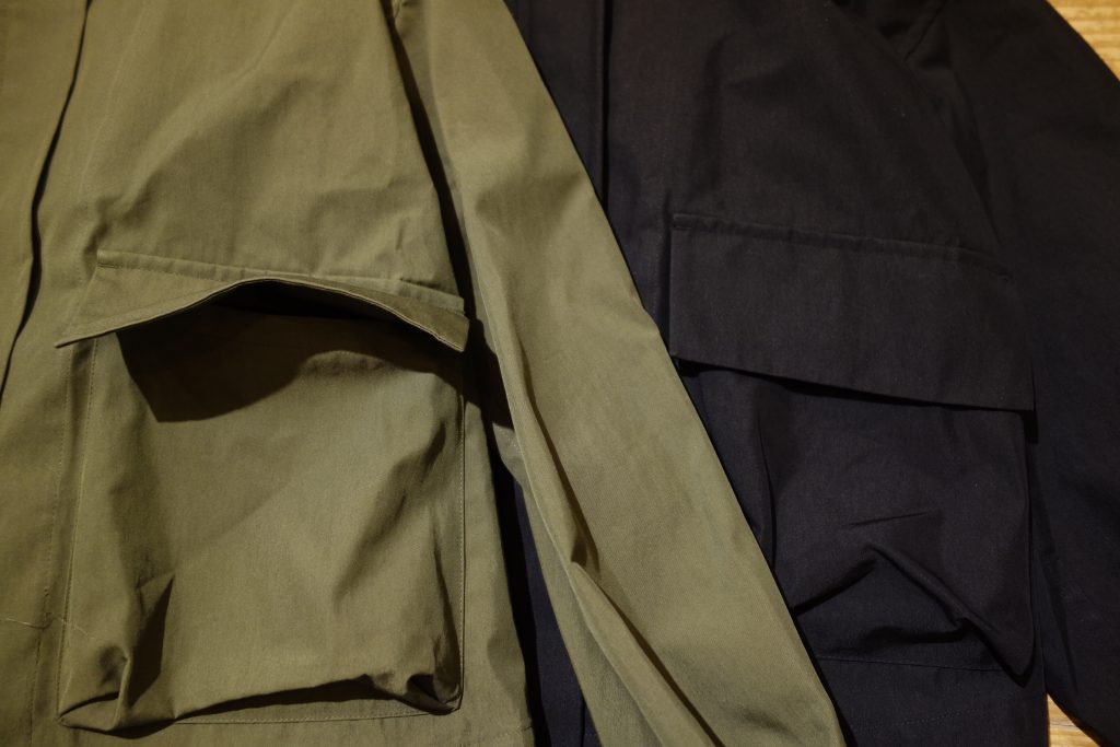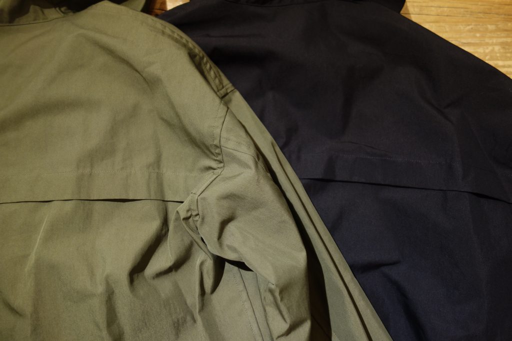 撥水加工が施された機能性素材が程よいハリ感で良い感じです。