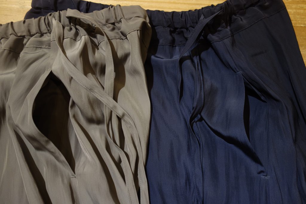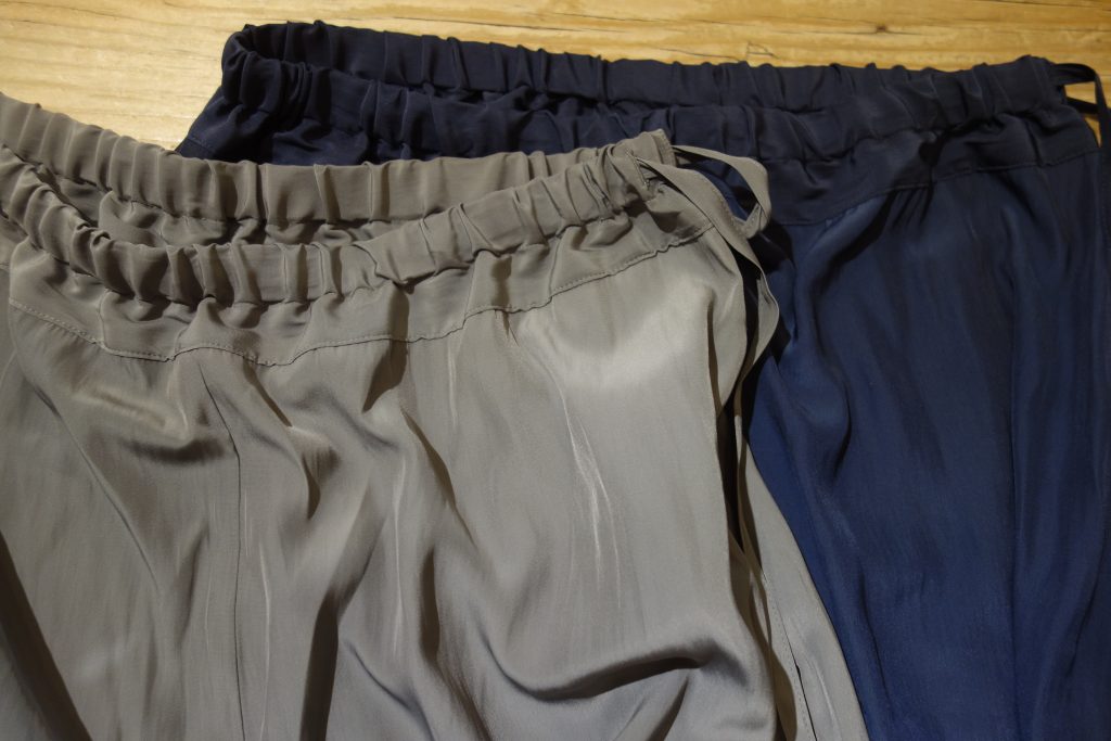 やや薄手で光沢感があり、夏の暑い時期でも涼しく穿けそう!