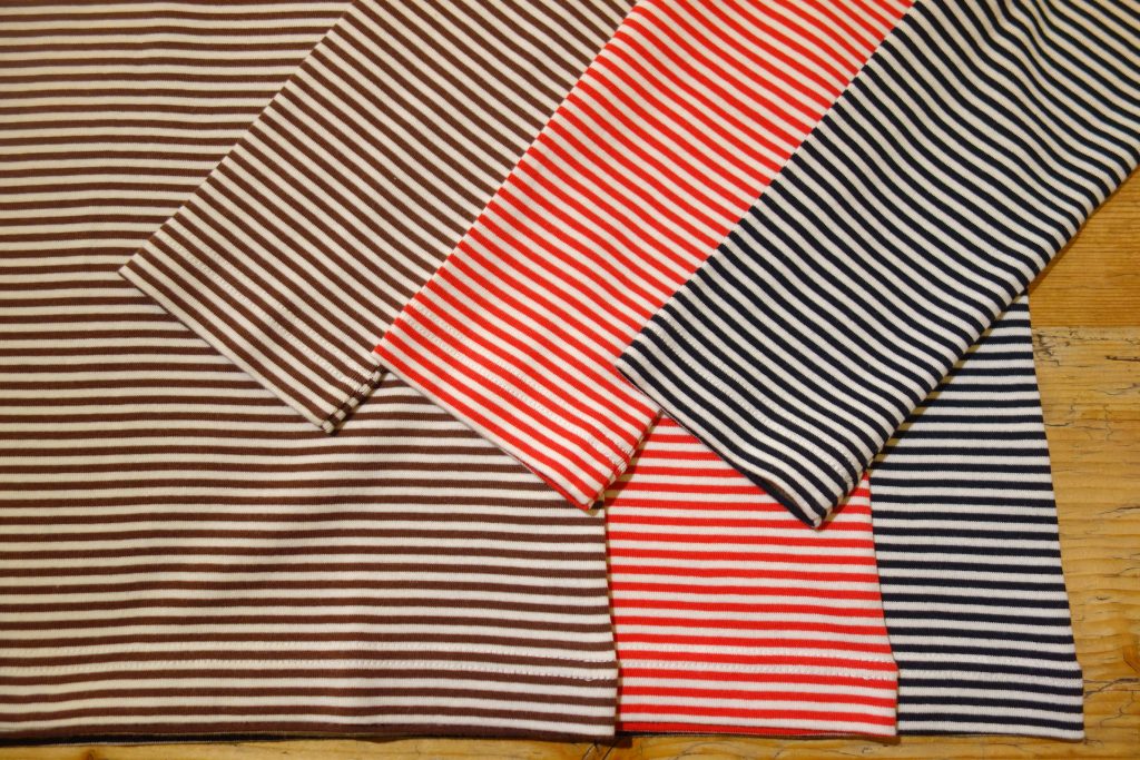 細ボーダーが新鮮で可愛く、重ね着にも映えそうです。