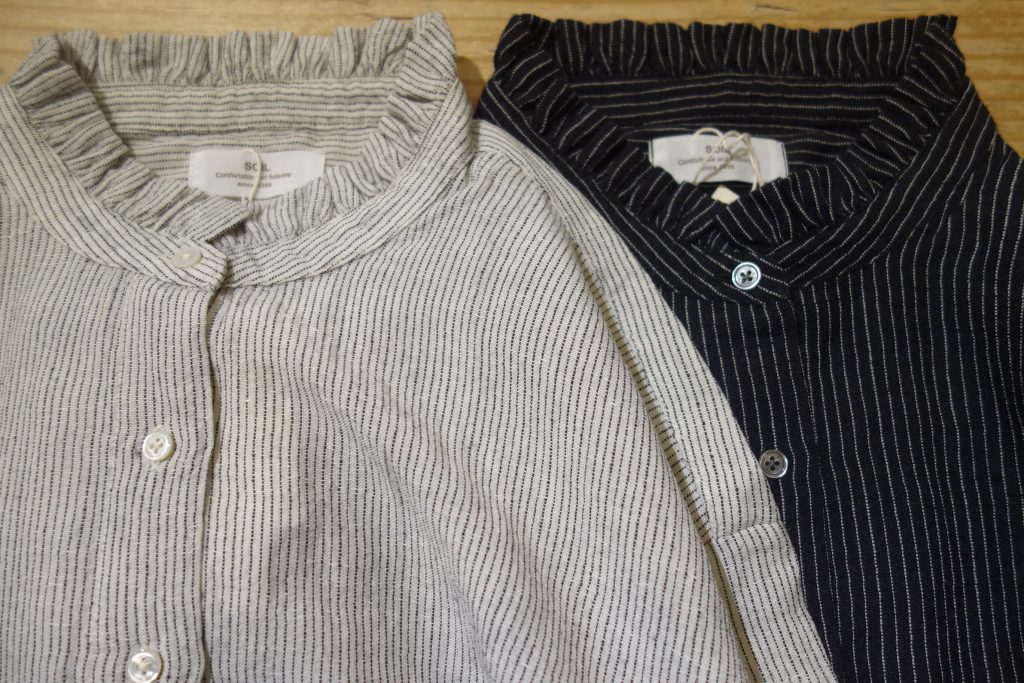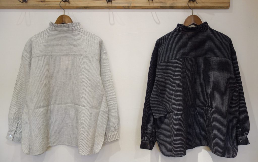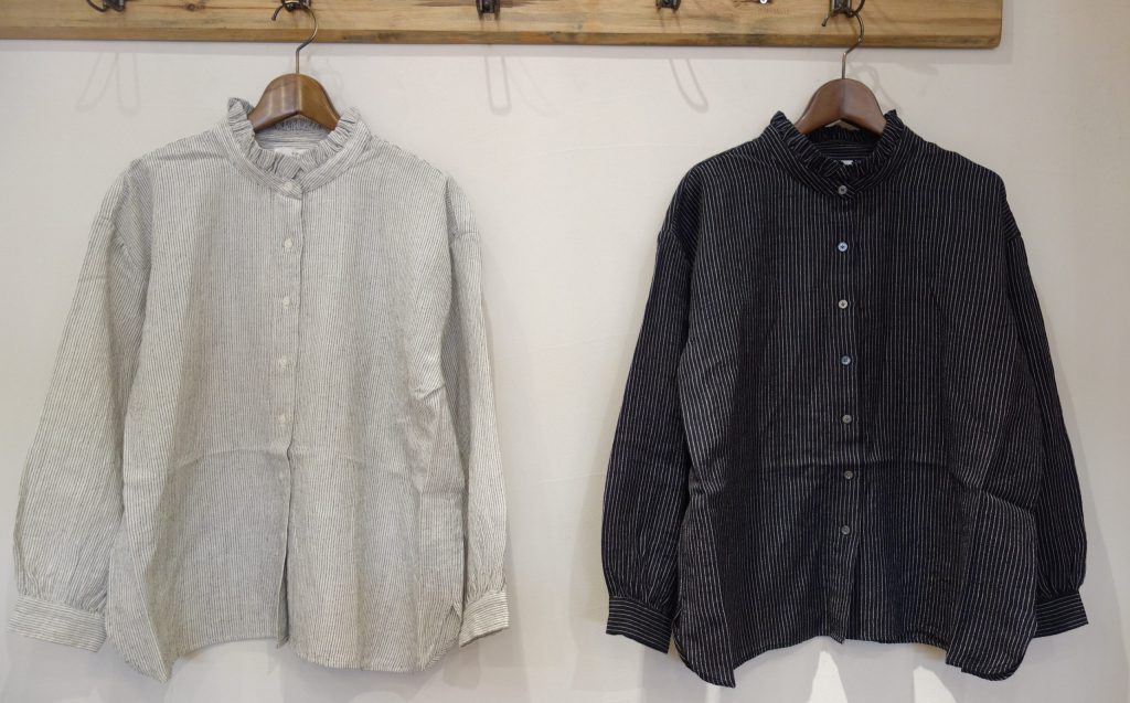 ウールリネンストライプフリルカラーシャツ(SOIL)¥24200税込
