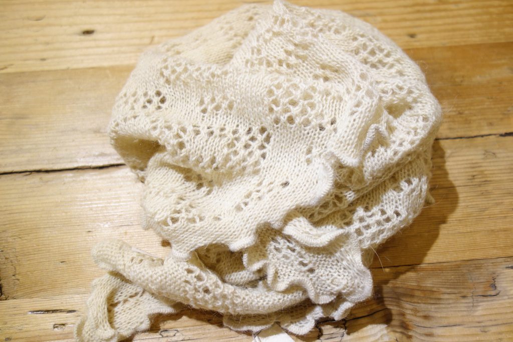 モヘアウール混合素材の軽やかなかぎ針ストール。