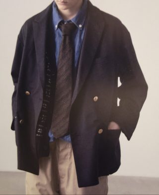 昨秋のシングルタイプに変わり今季とってもオススメのダブルボタンの紺色ジャケット。