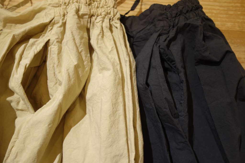 ガサガサしない生地感がとても心地よく、通年穿ける程よい厚みのが嬉しいパンツ。