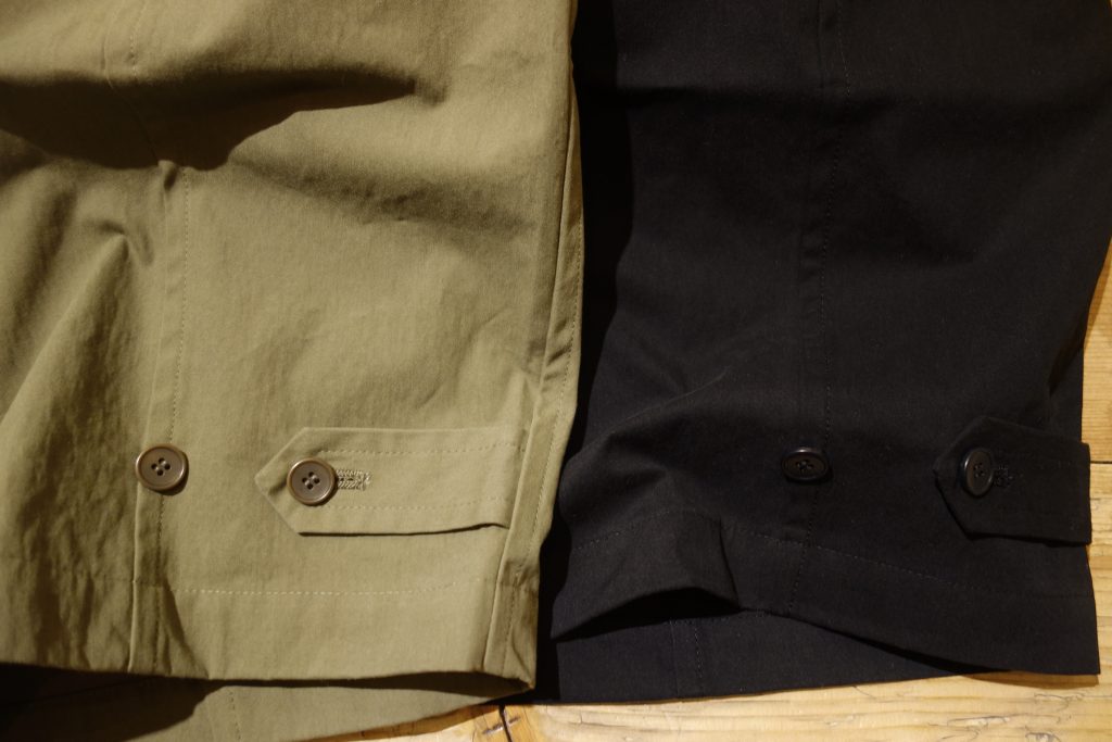 裾のボタンで僅かにシルエットが変えられる特徴的なデザインです。
