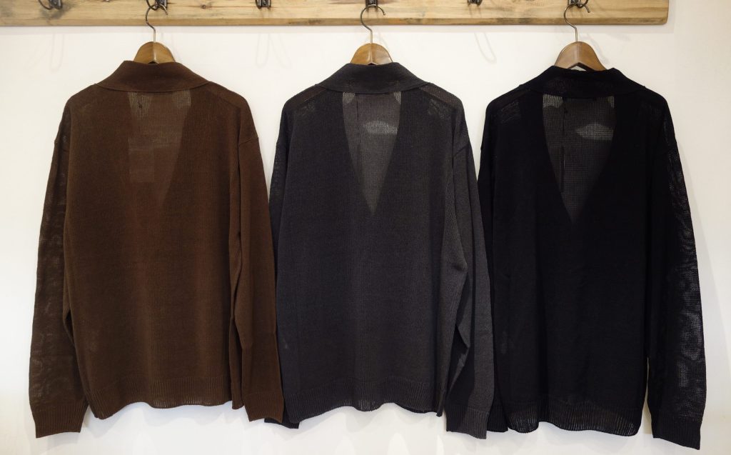 本日入荷のVネックカーディガンと合わせるのもオススメ。