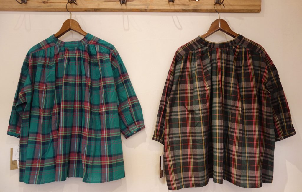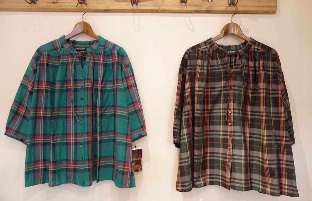 マドラスチェックスタンドカラーギャザーブラウス ¥16280税込