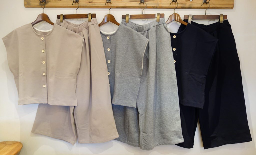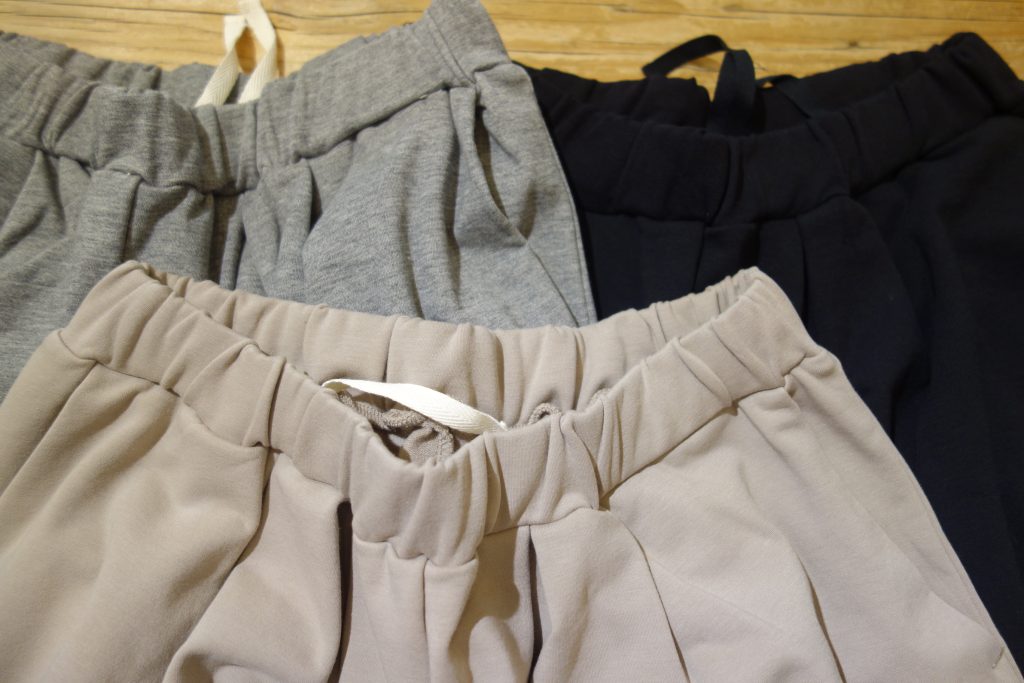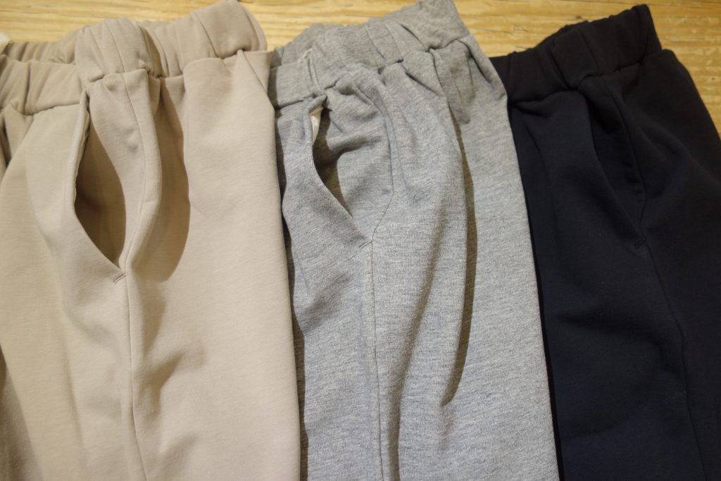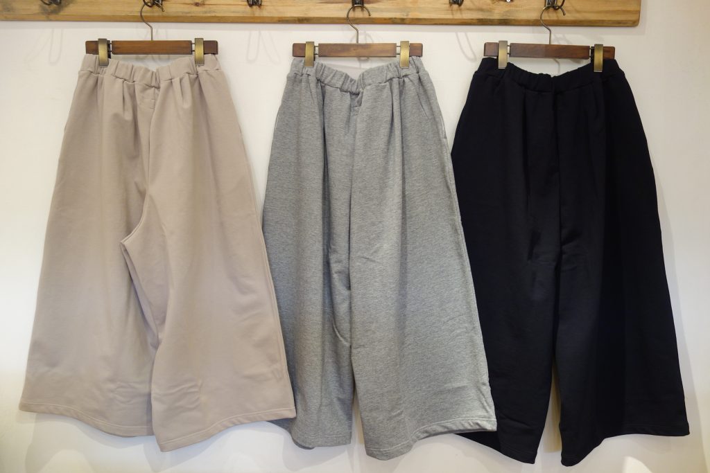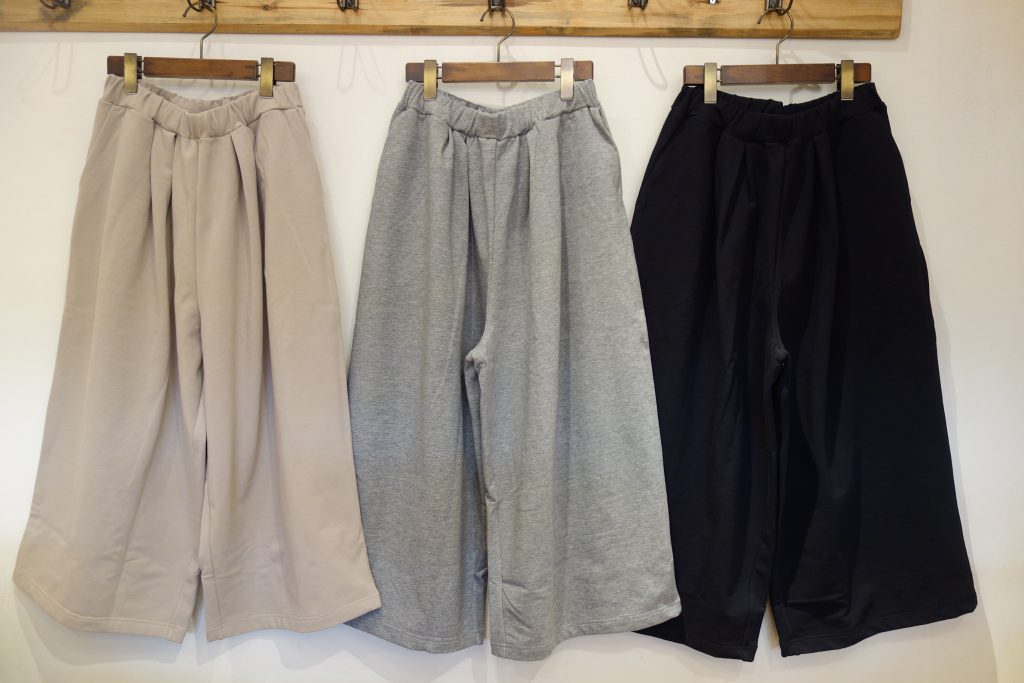 ベストと同じモチモチ裏毛を使用したワイドパンツがとってもオススメ。