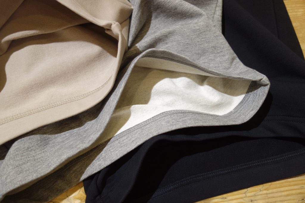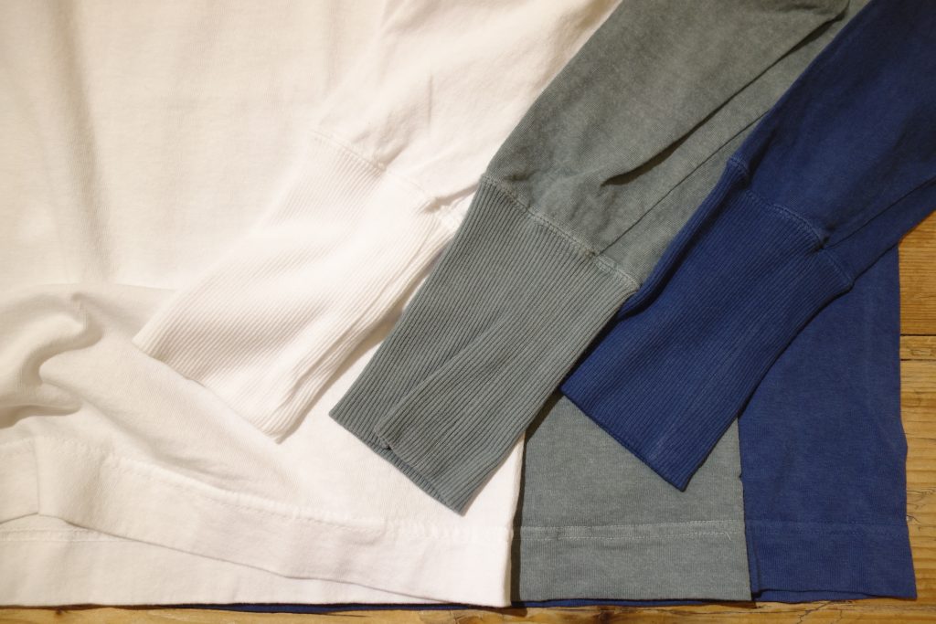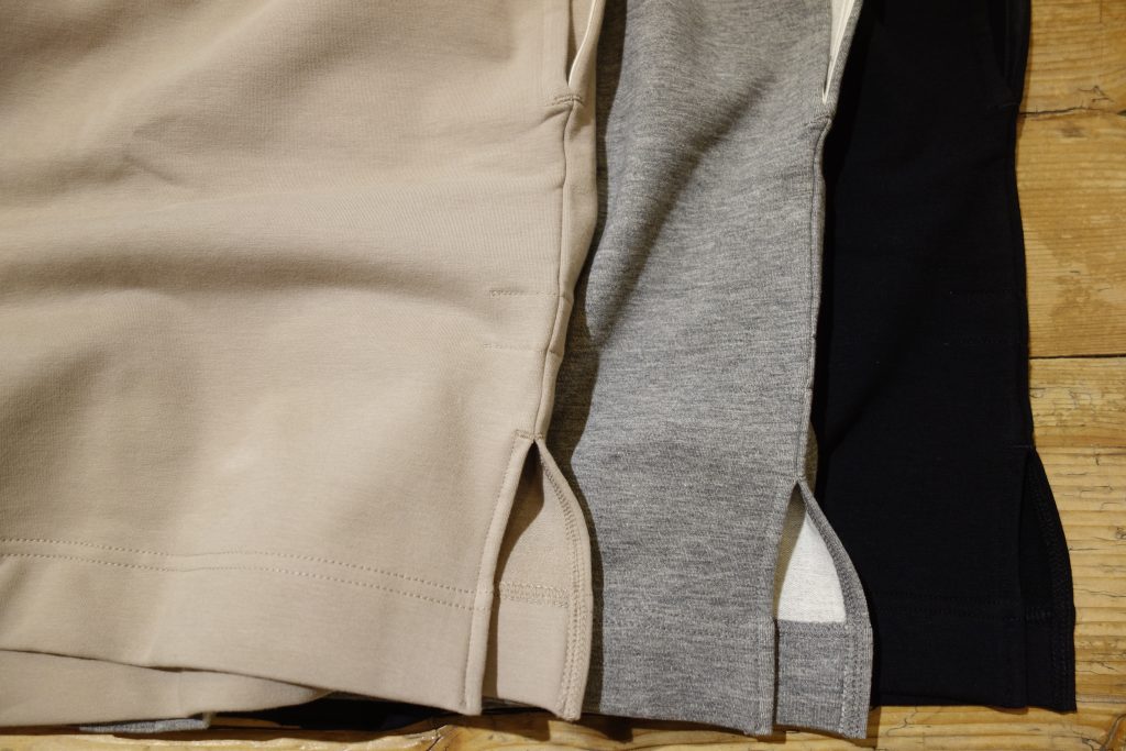毛足の短い裏毛素材は着れる季節がとても長く重宝するアイテム。