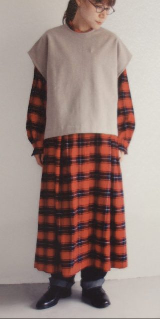 深みのあるツイード色が秋らしく、初秋はTシャツなどの上に、冬はニットに合わせて、