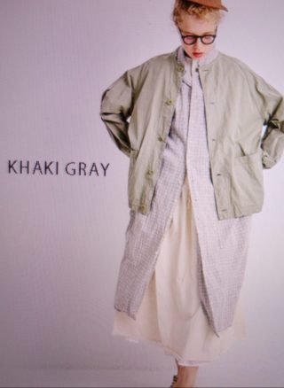 トレンチコートを思わせる大人っぽいカーキグレーが雰囲気良く、