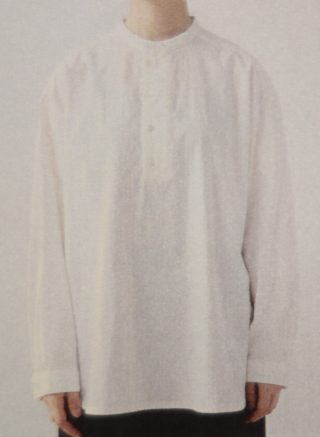 コットンオックス生地を使用した被りタイプの新作シャツ。